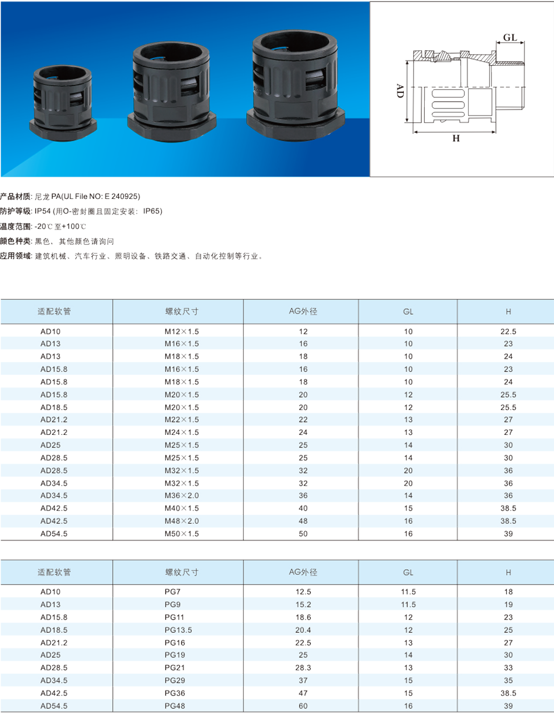 波纹管系列产品材质:尼龙PA(UL File NO: E 240925)