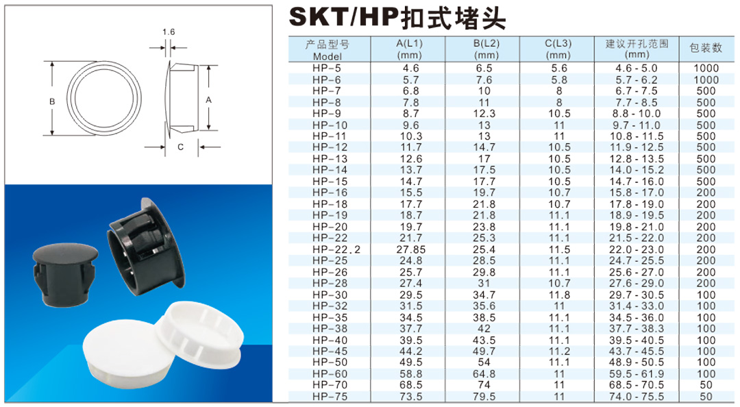 堵头系列材料:尼龙PA(UL File NO:E 240925)