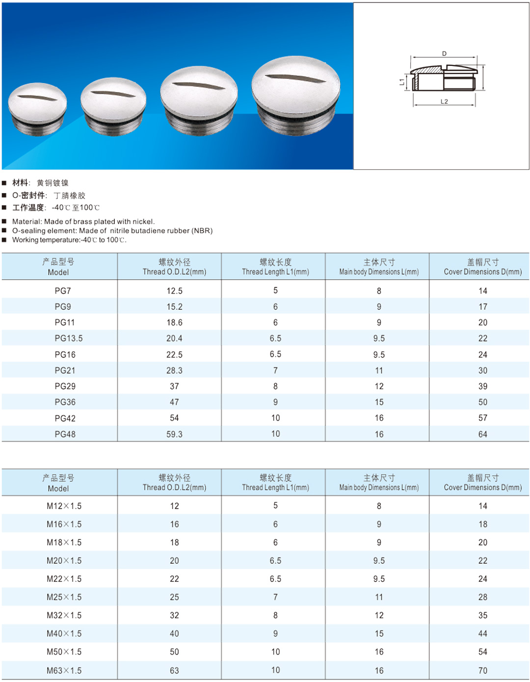 金属一字堵头