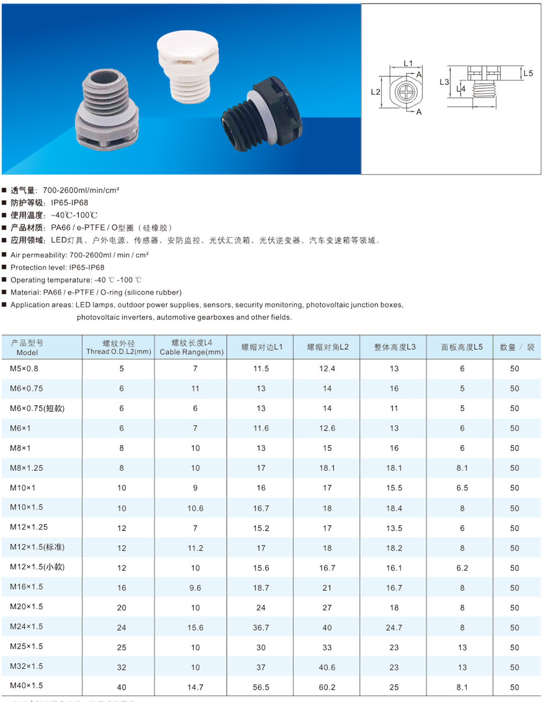 应用领域:LED灯具, 户外电源,传感器、安防监控,光伏汇流箱。光伏逆变器,汽车变速箱等领域。
