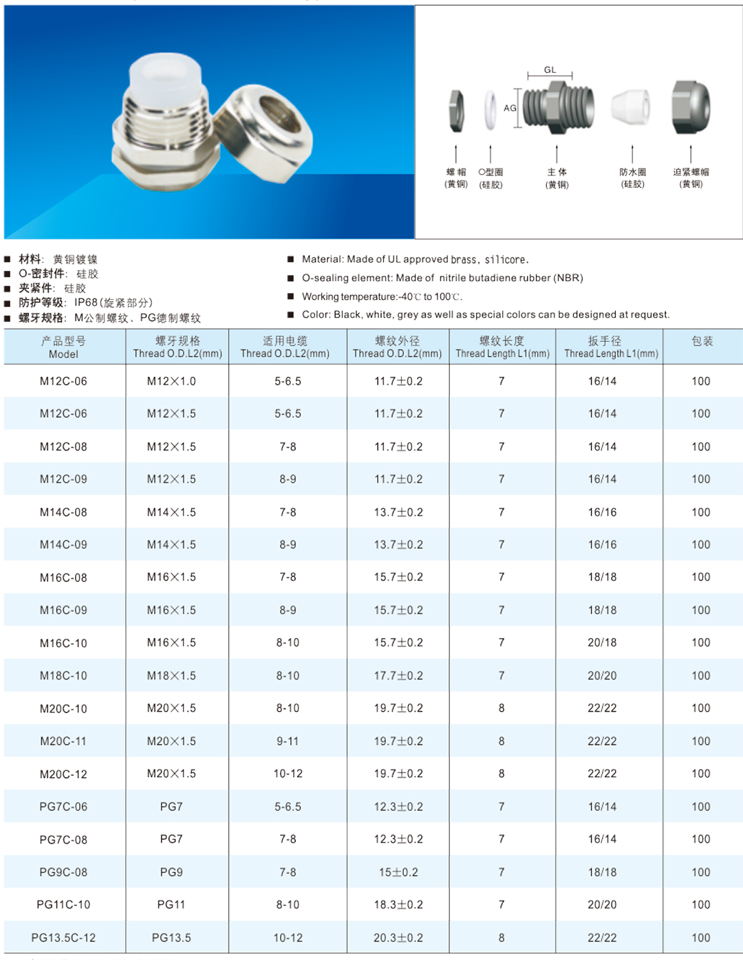 蠕牙规格:M公制蠕纹、PG德制螺纹